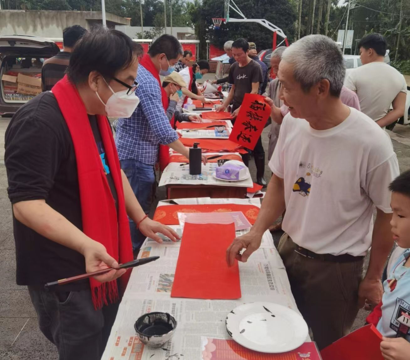 此外,本次春节前走访慰问还开展了“风雨送春归 玉兔迎春到”2023年琼台师范学院书画家送春联活动。活动现场,我校书法老师们挥毫泼墨,一副副春联为水竹村村民们带去了新春的祝福,同时也祝福伟大祖国,国泰民安,人民幸福。